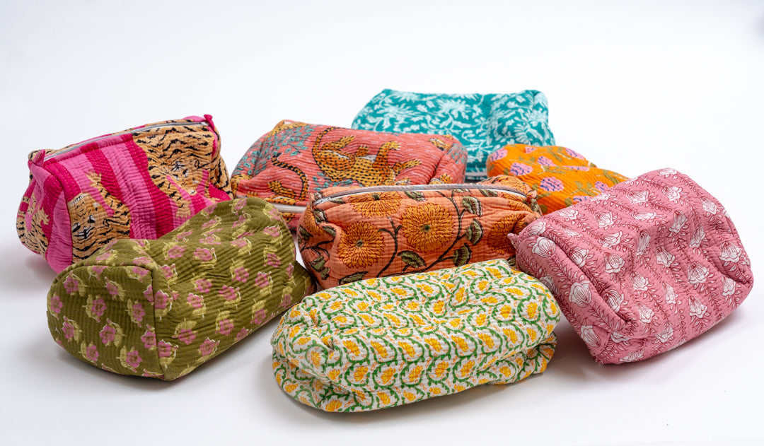 Sminkepunger/toalettmapper i myk og god bomull. Lommer innvendig. Supre å ha med...