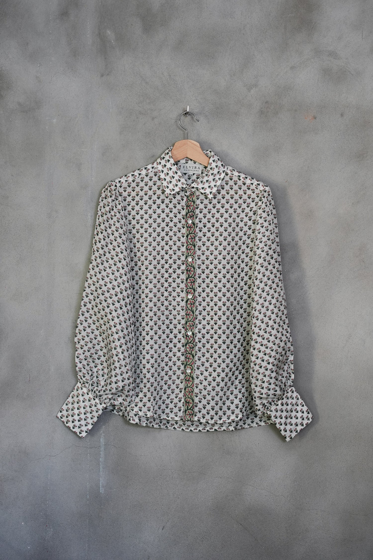 Elvira shirt - Grønne striper og valmue
