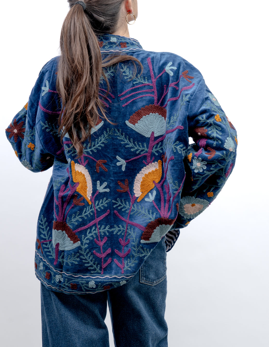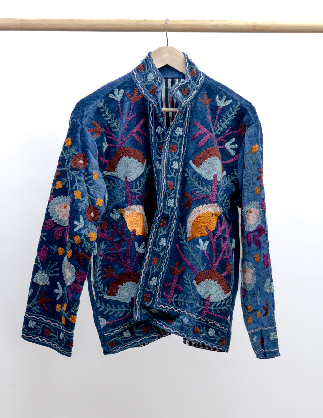 Myk og god jakke i 100% bomull, med brodert bomullsvelour på utsiden og glatt bomullsstoff på innsiden. Onesize jakkemodell som faller mykt og behagelig på kroppen.