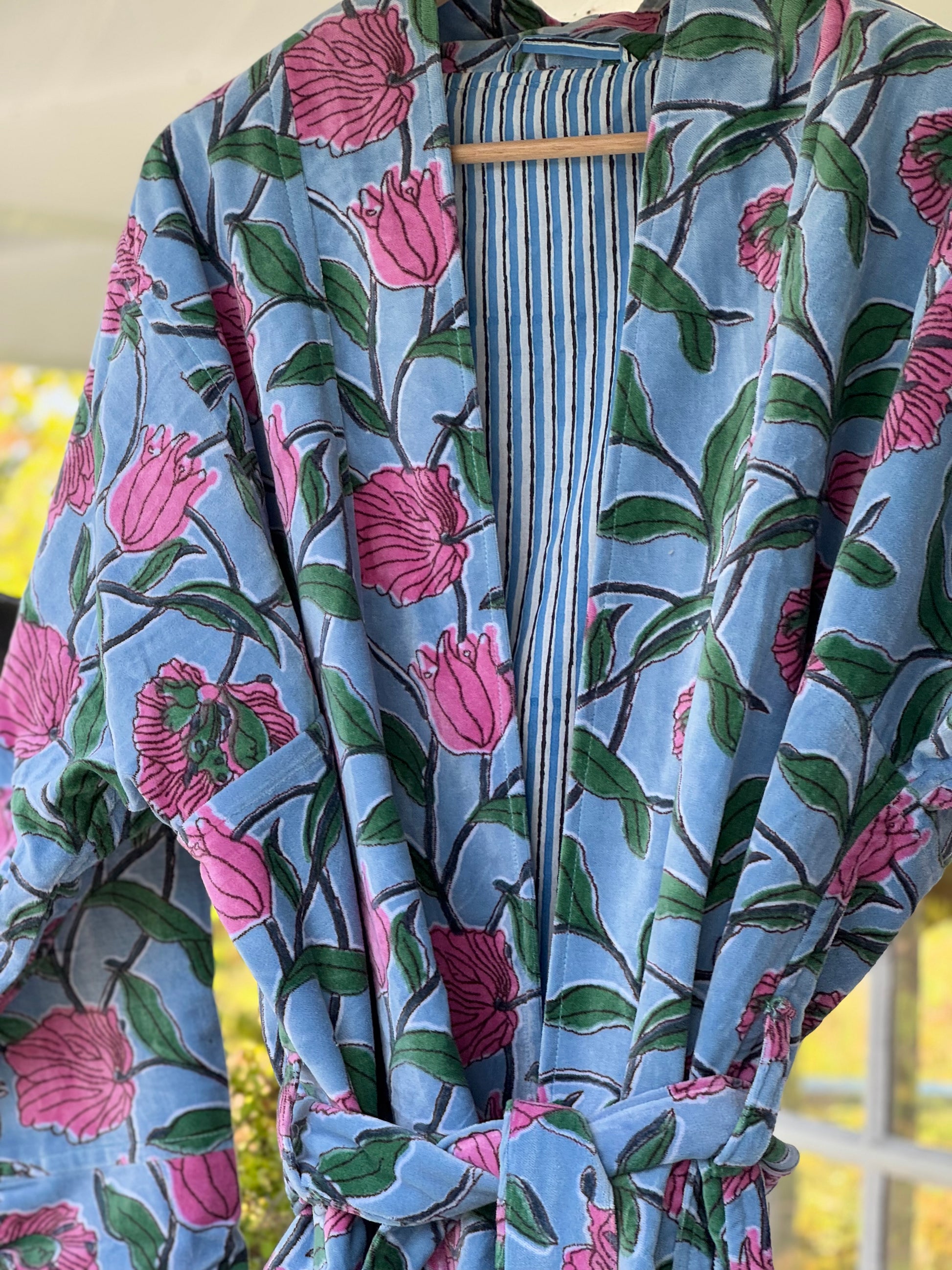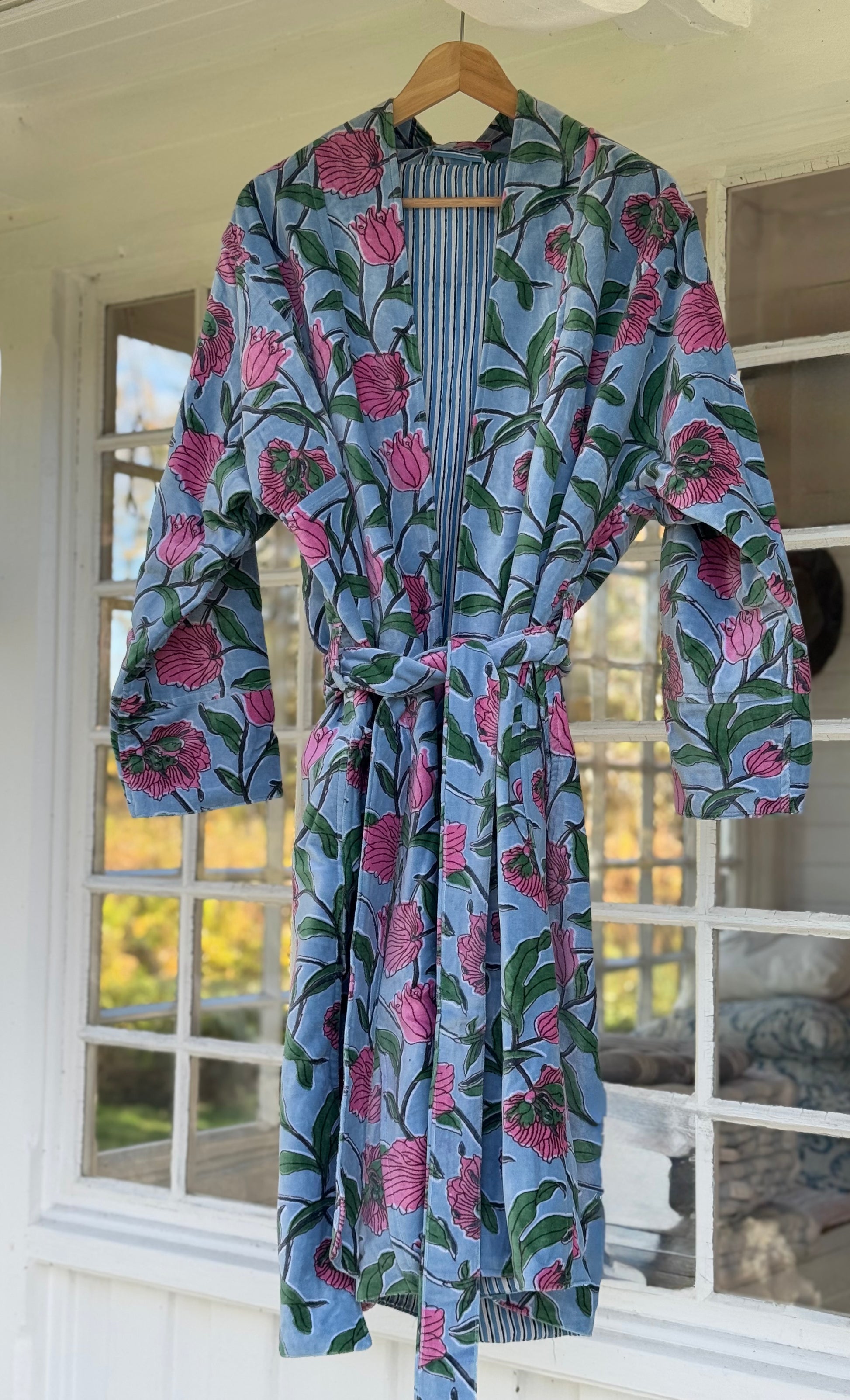 Behagelig morgenkåpe i myk bomullsvelour med et innerfôr i glatt bomull. En svært comfy passform. Super å ha på etter dusjen, til morgenkaffen eller morgenbadet.