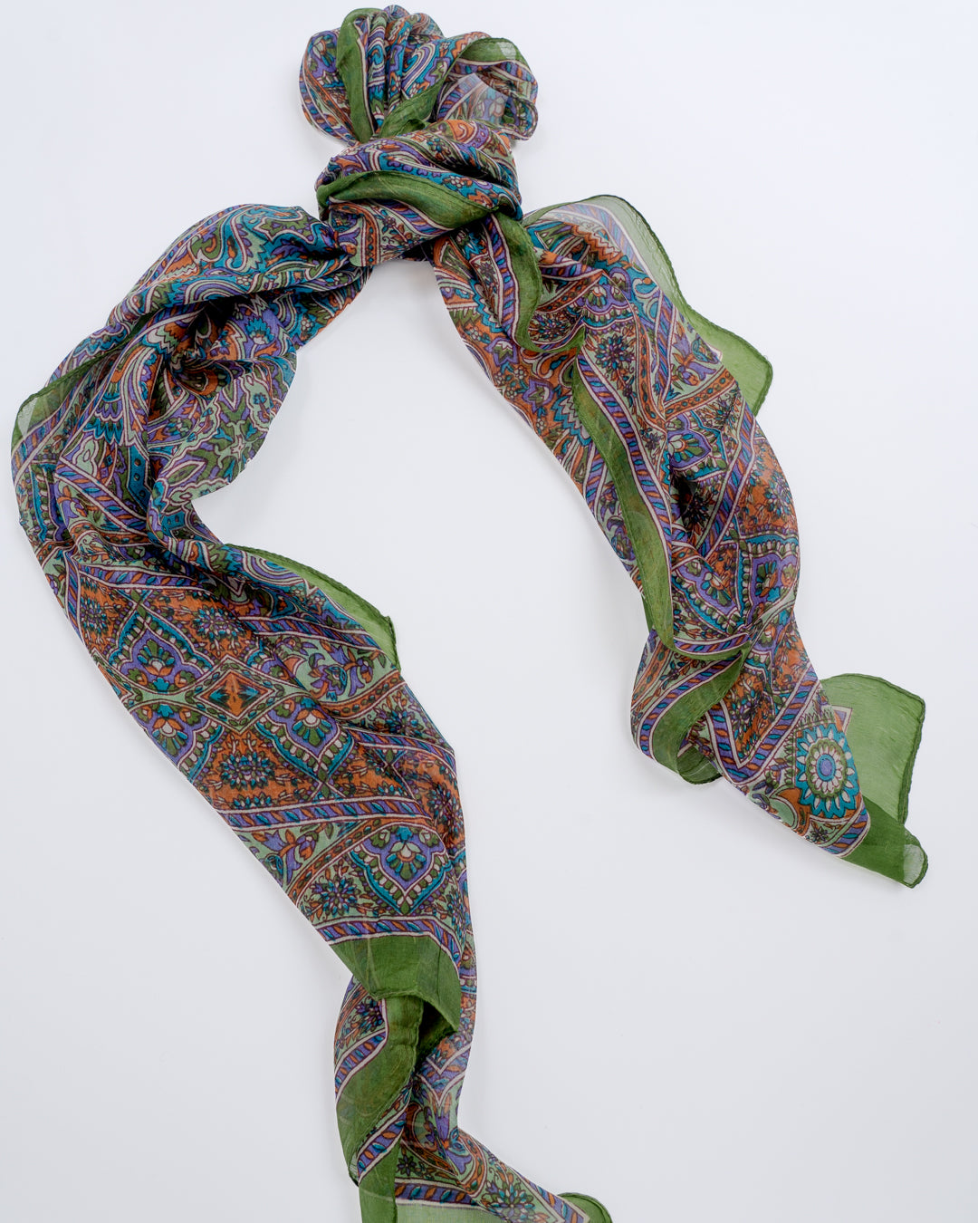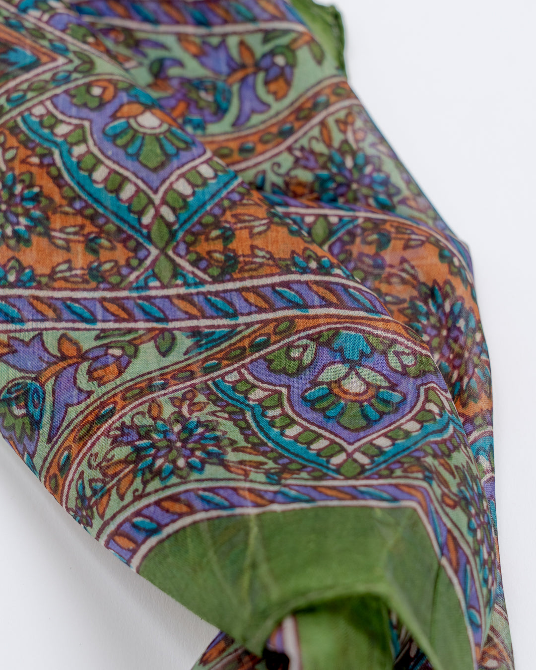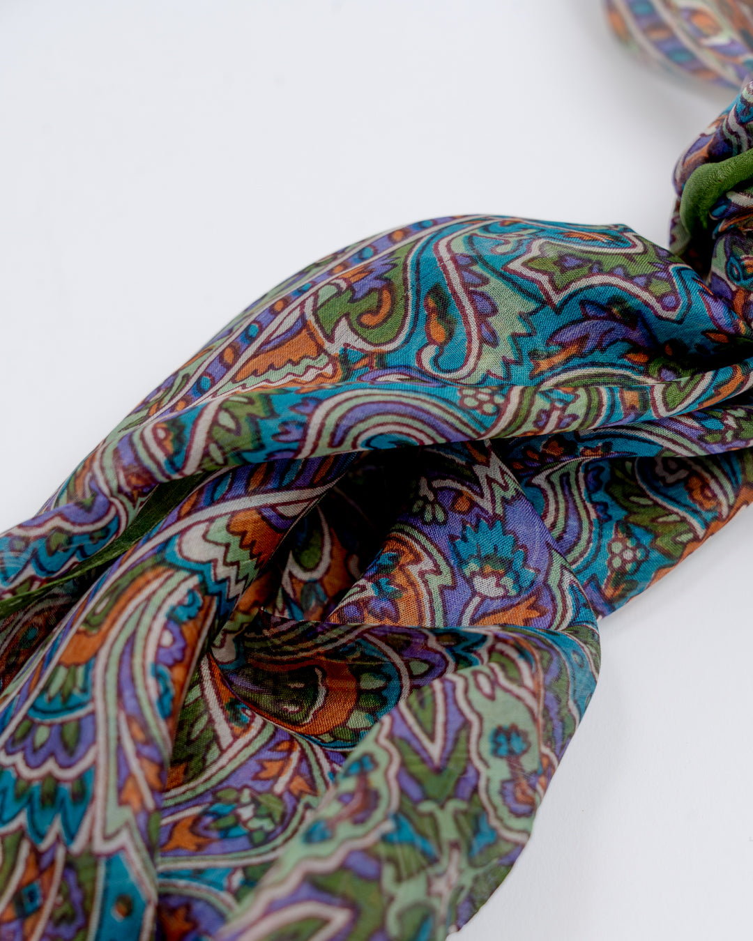Skjerf i lett silke som måler 170x50cm. Faller pent rundt halsen, og kan brukes året rundt. En fin detalj som løfter ethvert antrekk. Kan knytes på mange forskjellige måter, og varmer godt dersom du surrer det flere ganger rundt halsen.