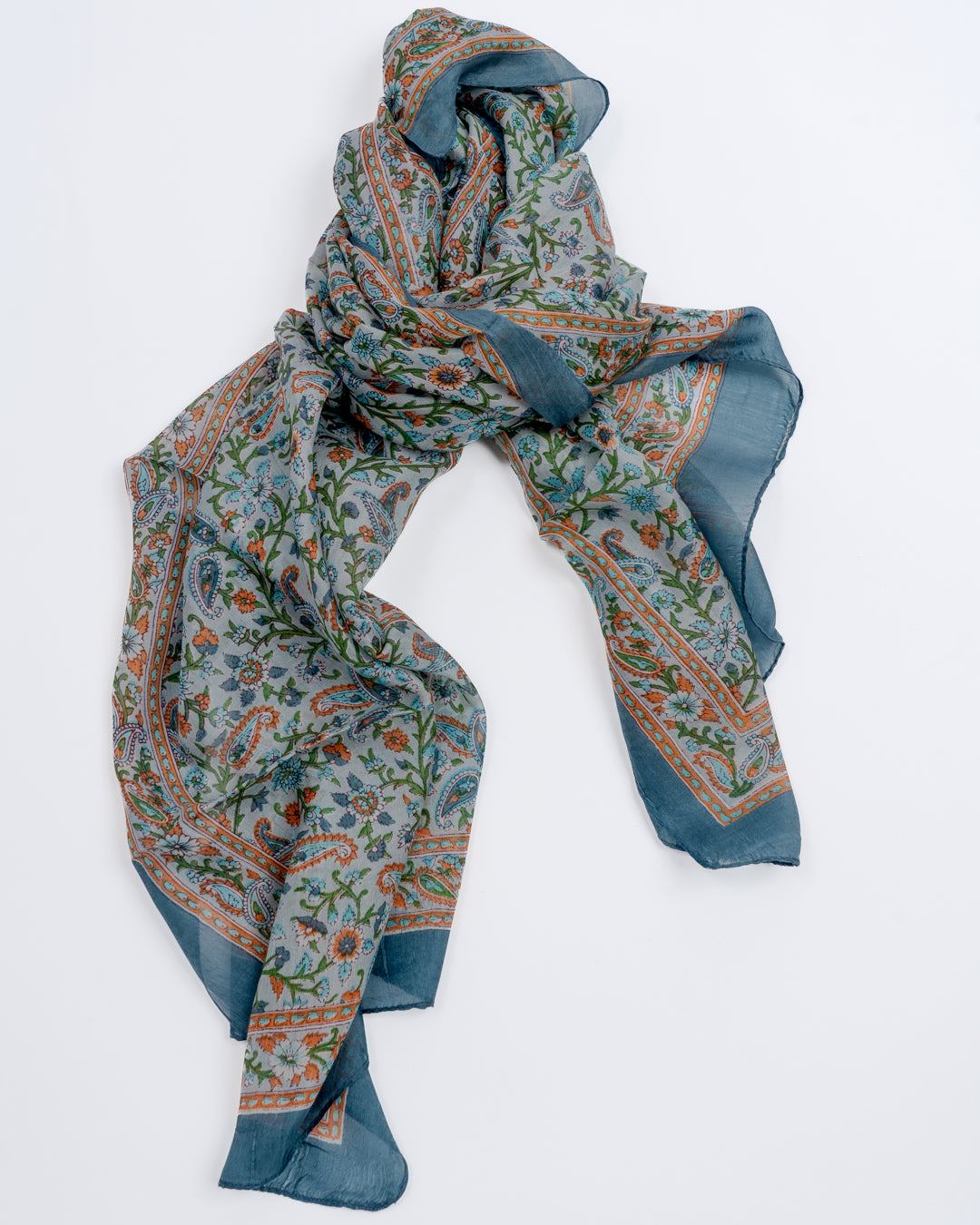Skjerf i lett silke som måler 170x50cm. Faller pent rundt halsen, og kan brukes året rundt. En fin detalj som løfter ethvert antrekk. Kan knytes på mange forskjellige måter, og varmer godt dersom du surrer det flere ganger rundt halsen.