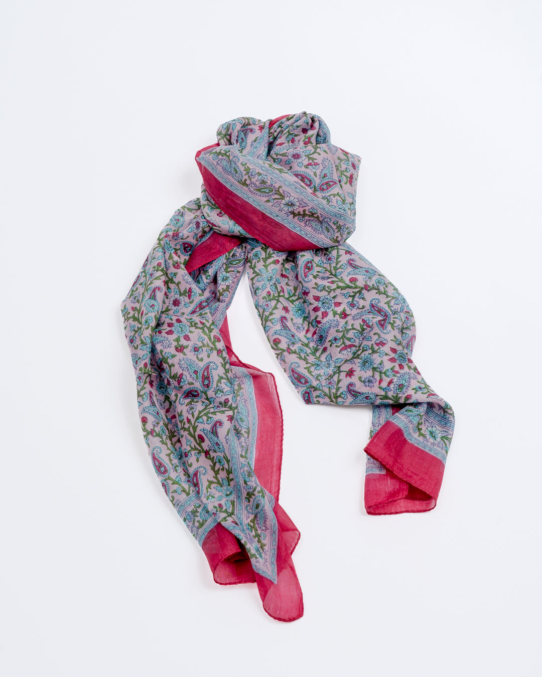 Skjerf i lett silke som måler 170x50cm. Faller pent rundt halsen, og kan brukes året rundt. En fin detalj som løfter ethvert antrekk. Kan knytes på mange forskjellige måter, og varmer godt dersom du surrer det flere ganger rundt halsen.