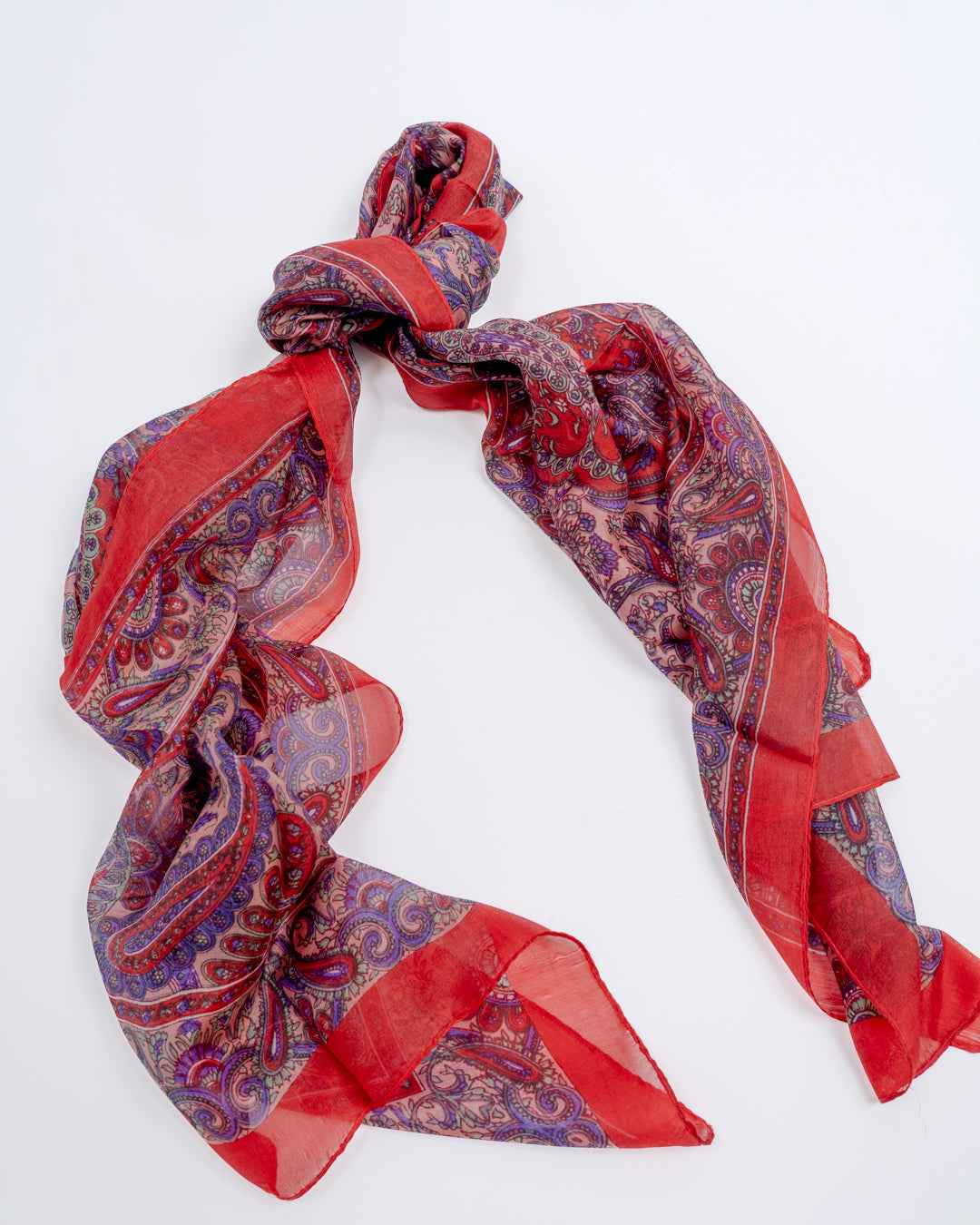Skjerf i lett silke som måler 170x50cm. Faller pent rundt halsen, og kan brukes året rundt. En fin detalj som løfter ethvert antrekk. Kan knytes på mange forskjellige måter, og varmer godt dersom du surrer det flere ganger rundt halsen.