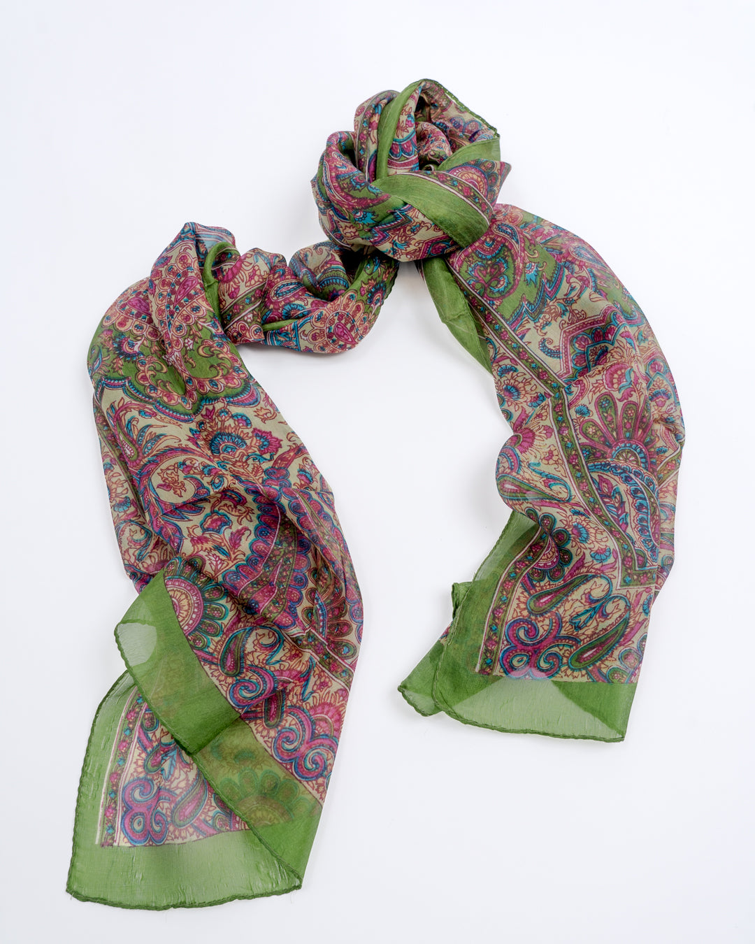 Skjerf i lett silke som måler 170x50cm. Faller pent rundt halsen, og kan brukes året rundt. En fin detalj som løfter ethvert antrekk. Kan knytes på mange forskjellige måter, og varmer godt dersom du surrer det flere ganger rundt halsen.