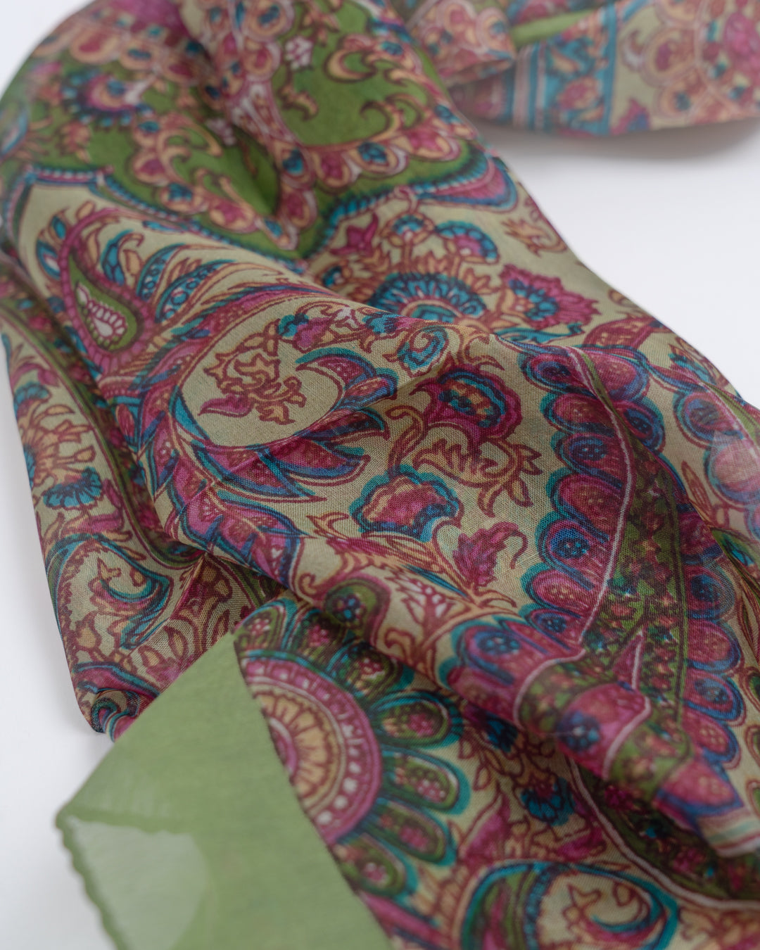 Dette er så tynt som silke kan veves – et ultralett skjerf som nesten ikke merkes mot huden og det får plass i små vesker og lommer. På grunn av den fine vevingen kan enkelte silkefibre stikke litt ut langs sømmene. Disse er det bare å klippe bort.