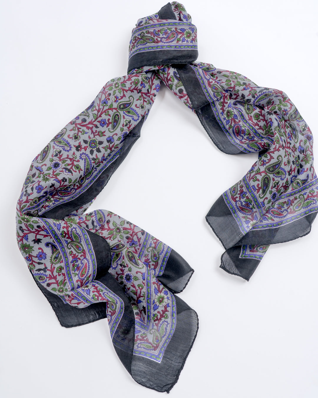Skjerf i lett silke som måler 170x50cm. Faller pent rundt halsen, og kan brukes året rundt. En fin detalj som løfter ethvert antrekk. Kan knytes på mange forskjellige måter, og varmer godt dersom du surrer det flere ganger rundt halsen.