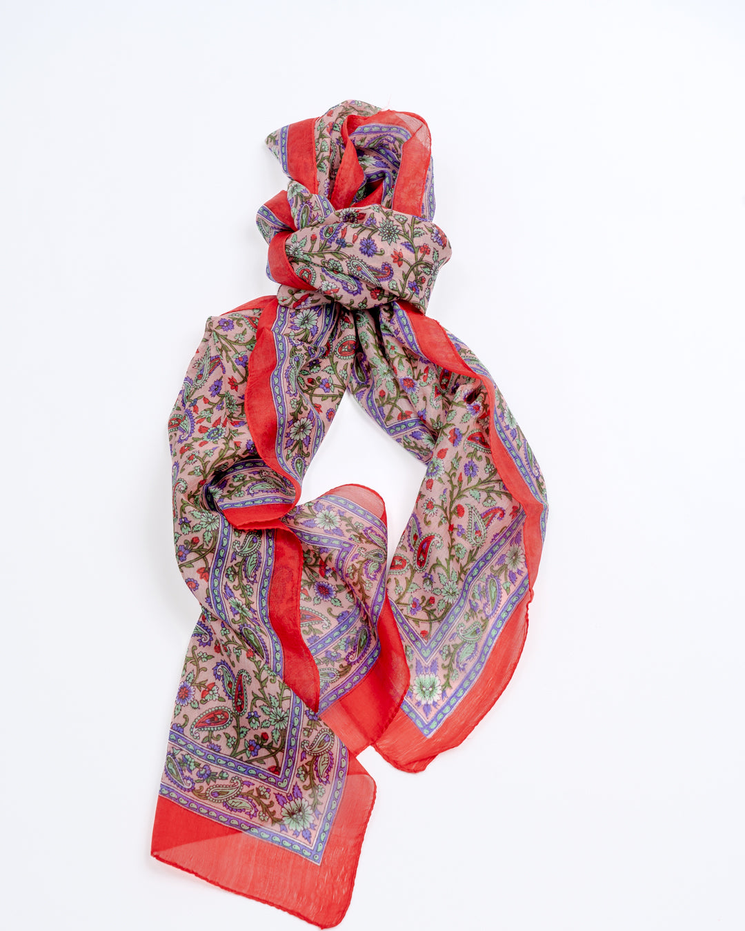Skjerf i lett silke som måler 170x50cm. Faller pent rundt halsen, og kan brukes året rundt. En fin detalj som løfter ethvert antrekk. Kan knytes på mange forskjellige måter, og varmer godt dersom du surrer det flere ganger rundt halsen.