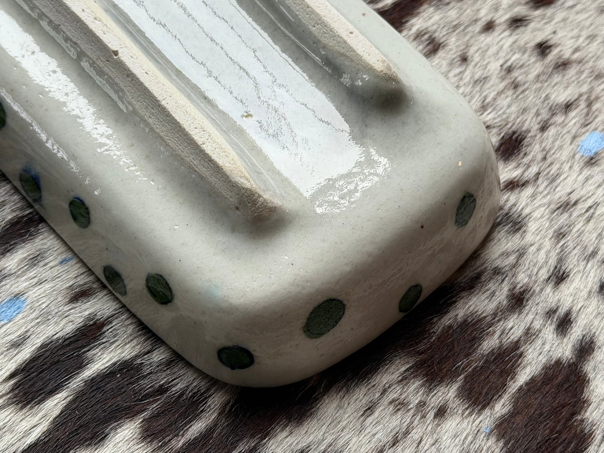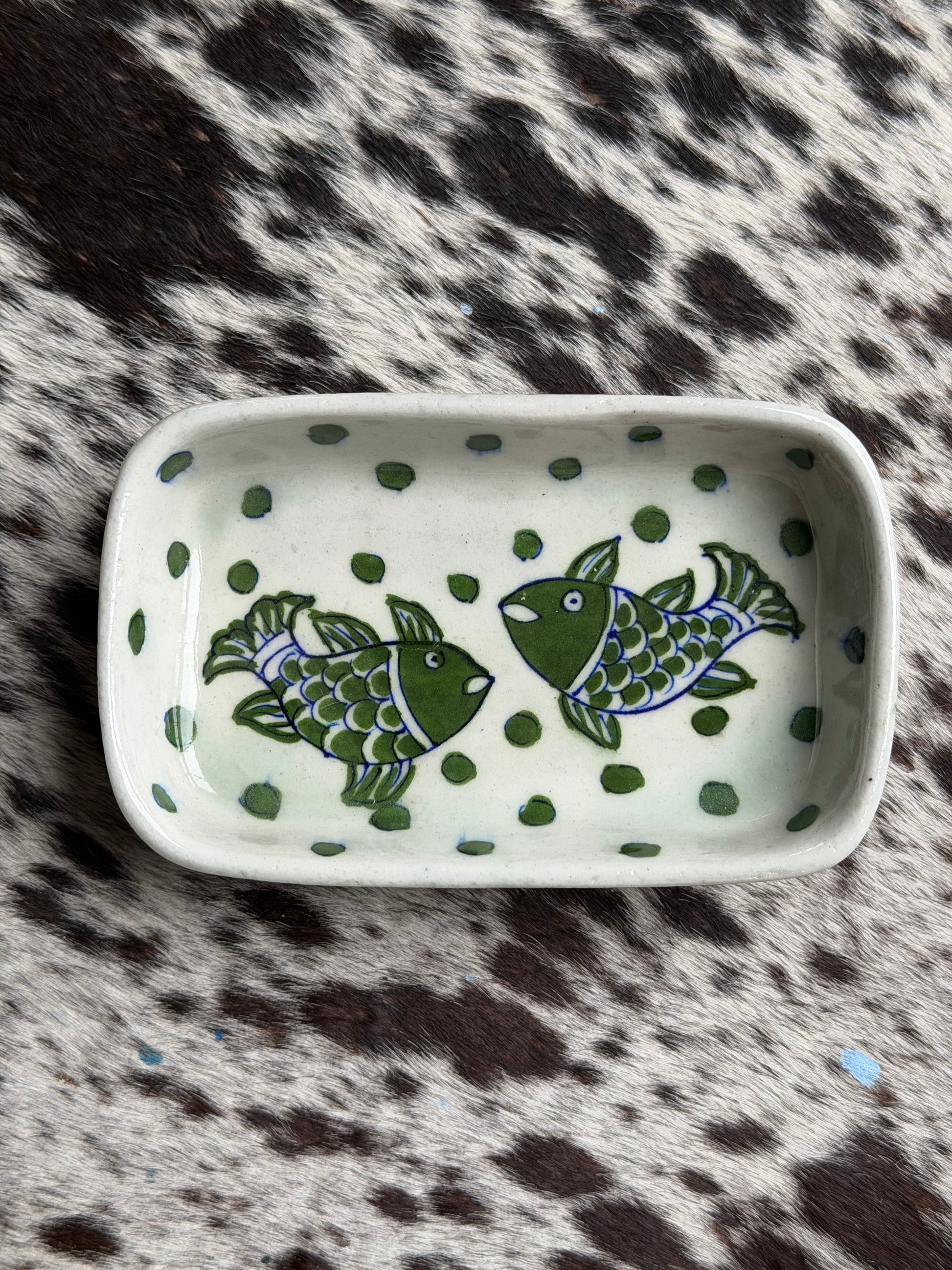 En skjønn liten skål i keramikk fra Jaipur med håndmalt dekorasjon.