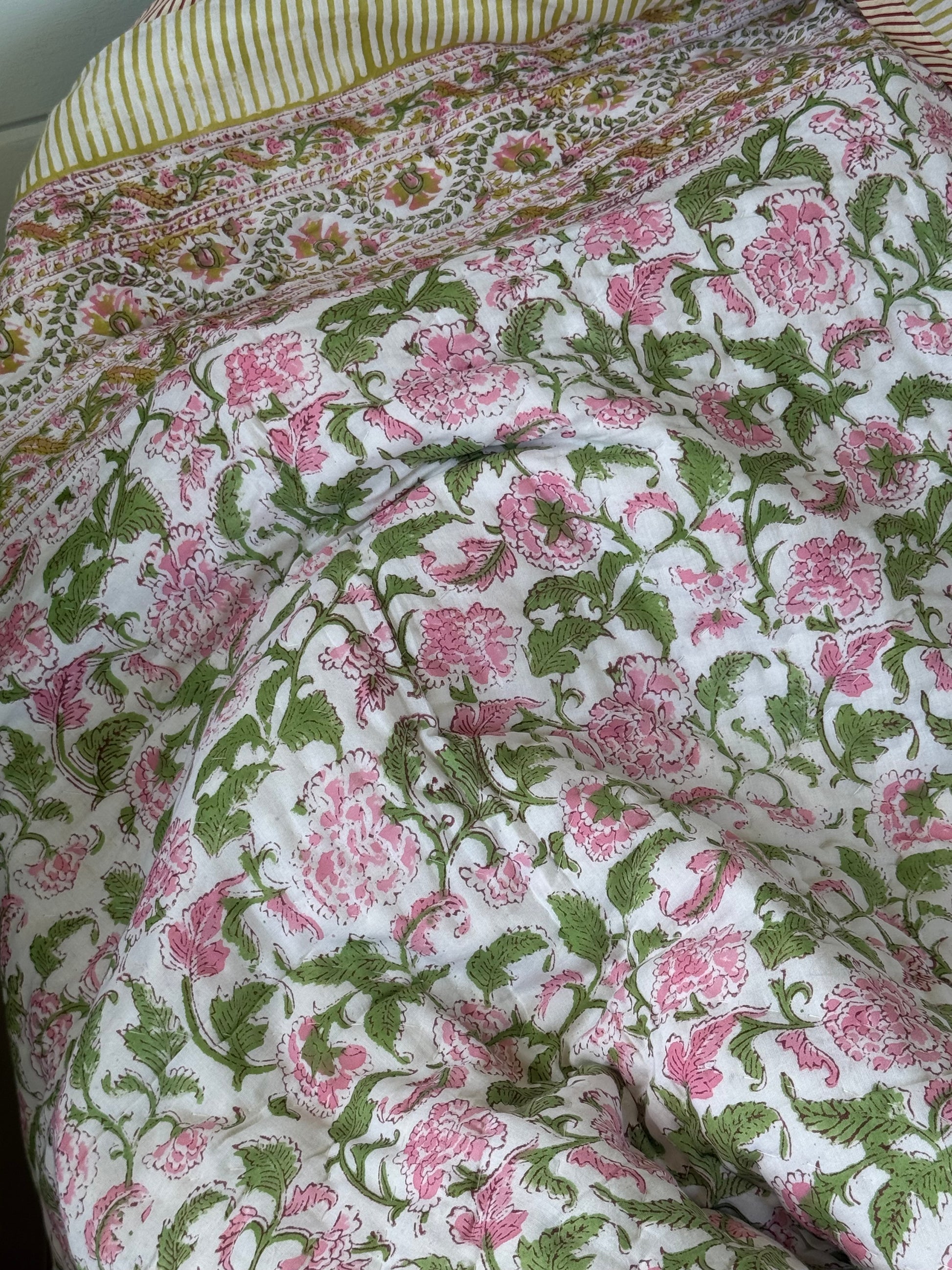 Et litt tynnere vattert teppe - perfekt til å brette ned i en totebag og ha med seg i parken. Fungerer også superfint som sengeteppe eller sofateppe. Teppene oppleves svalende når solen steker, og varmende om du pakker deg inn i dem en kjølig dag.